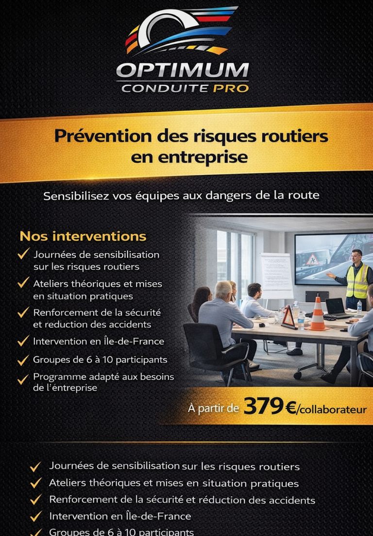 OPTIMUM CONDUITE Pro accompagne les entreprises dans la sensibilisation et la prévention des risques routiers.